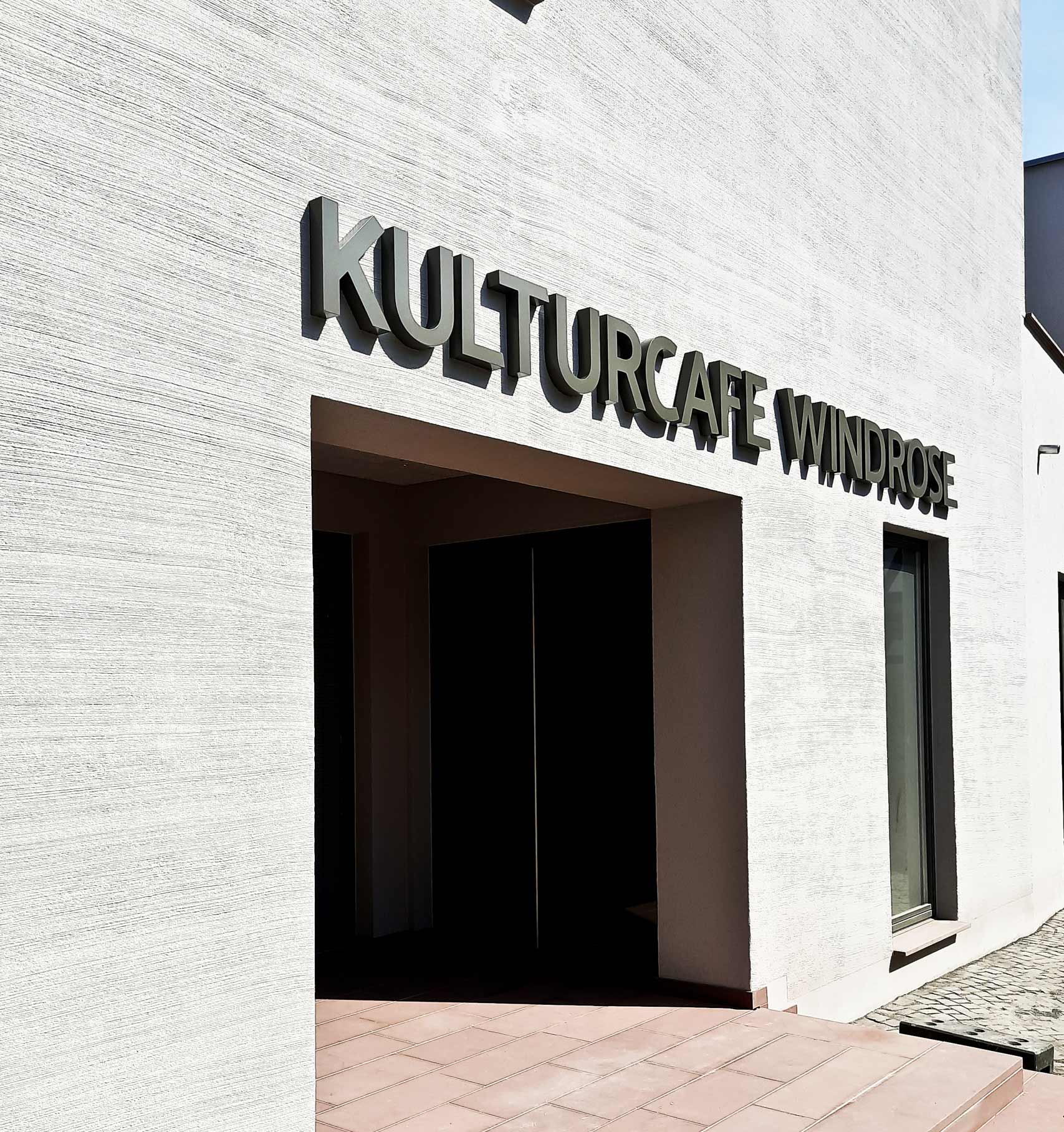 Kombination mit Einzelbuchstaben in Profil 1 Bauweise und schwarzen Acrylglasbuchstaben. Die Profilbuchstaben werden aus einem Aluminiumgehäuse gebaut und anschließend nach RAL lackiert.