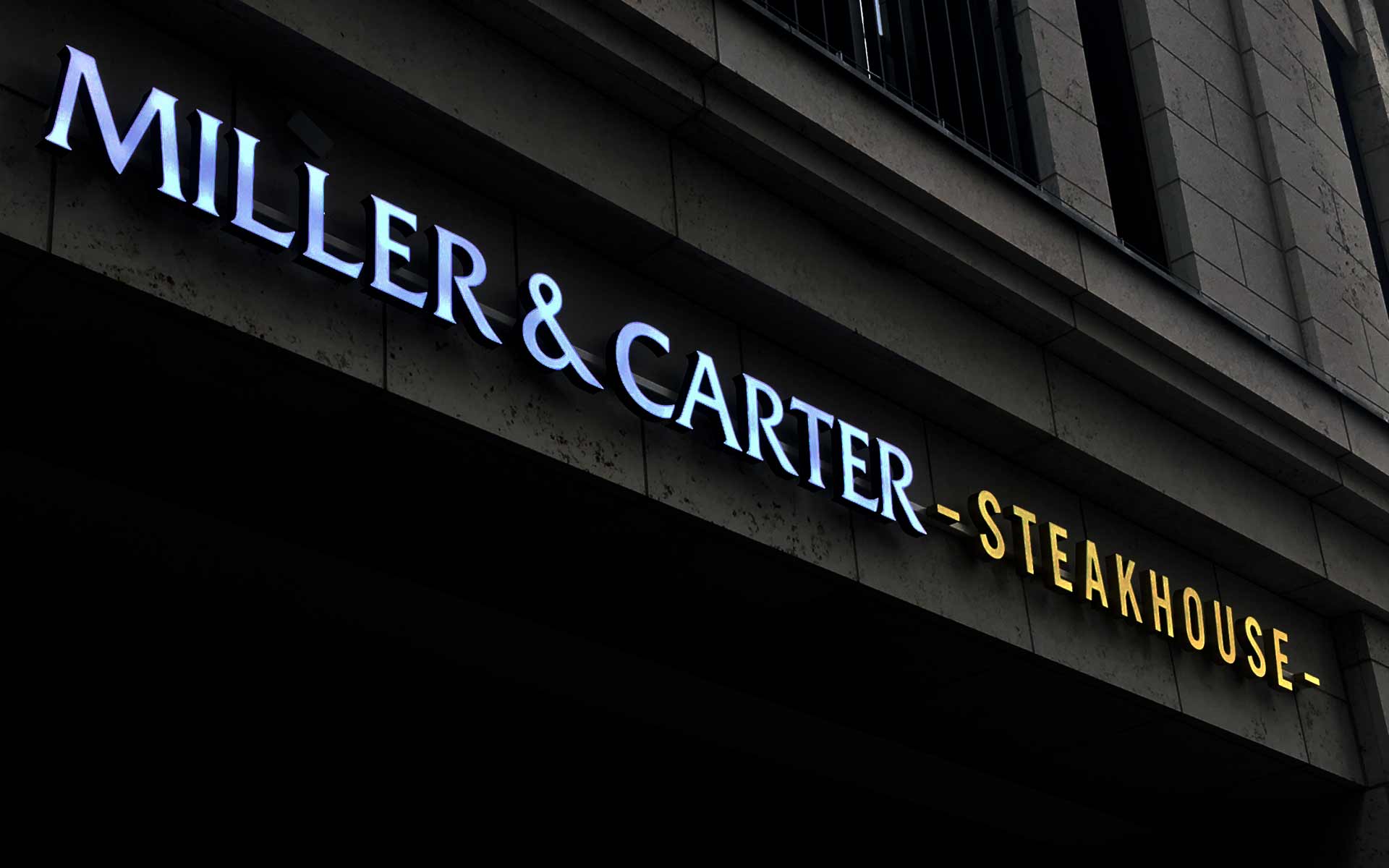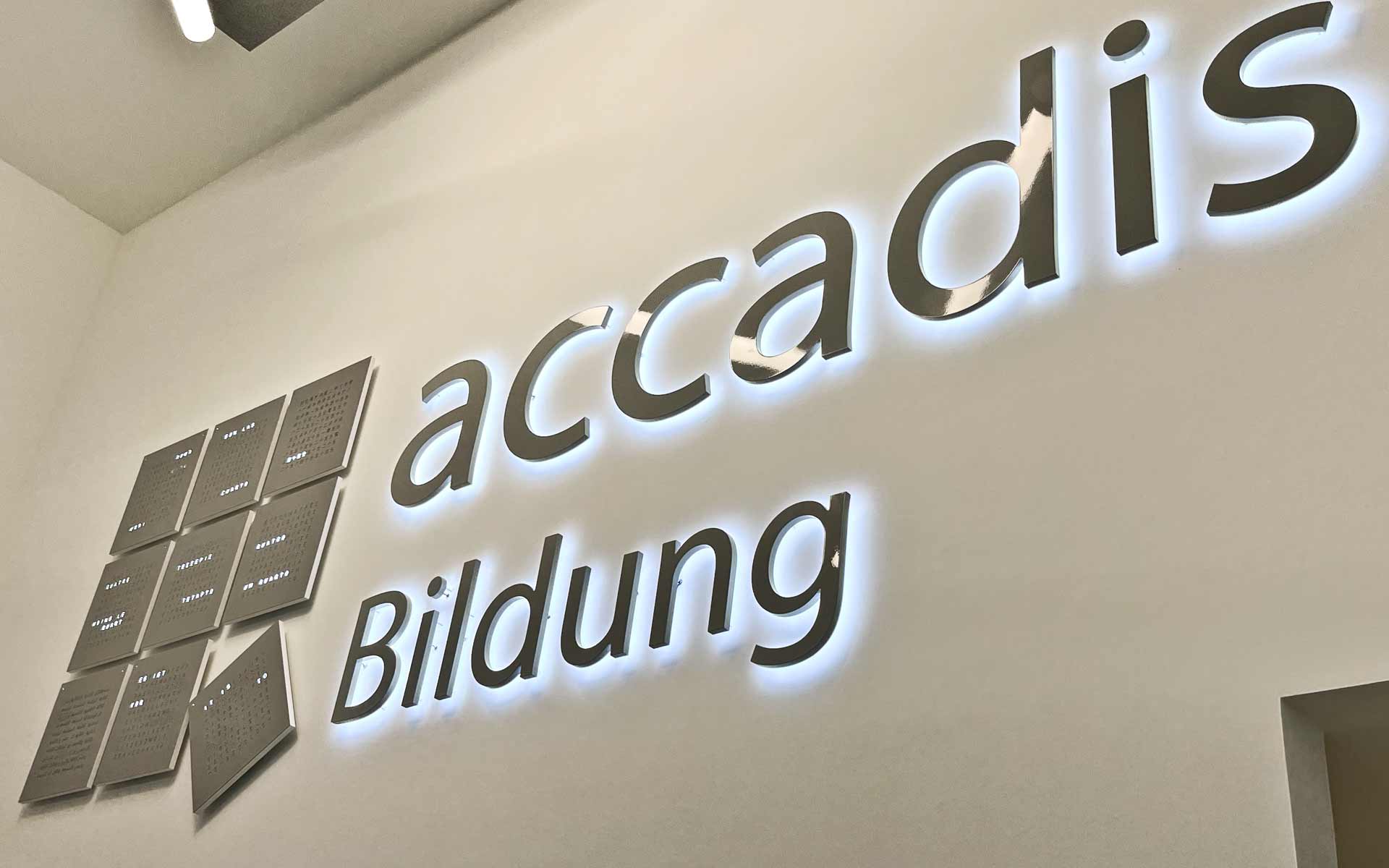 Die Buchstaben sind indirekt beleuchtet und geben zur Rückseite ihr Licht ab. Durch die Montage auf Wandabstand tritt das Licht dann gleichmäßig zu den Seiten aus und entfaltet seine Wirkung um den Buchstaben herum. Die Einzelbuchstaben in Profil 3-Bauweise können nach Bedarf in RAL lackiert oder verchromt geliefert werden.
